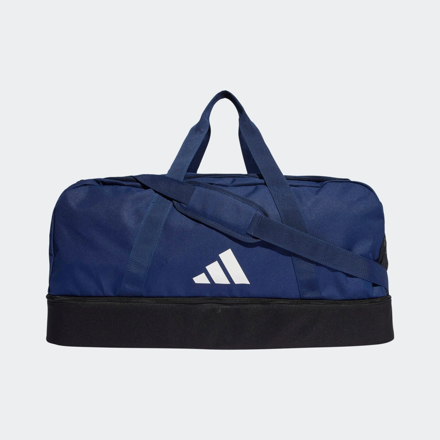 This adidas Tiro League duffel bag is perfect for carrying your football gear to and from the game. The hard-case bottom compartment keeps your essentials safe and organised, and the side mesh pocket is perfect for holding a water bottle or half-time snacks. The large U-shaped opening means no more rooting around for your gear.