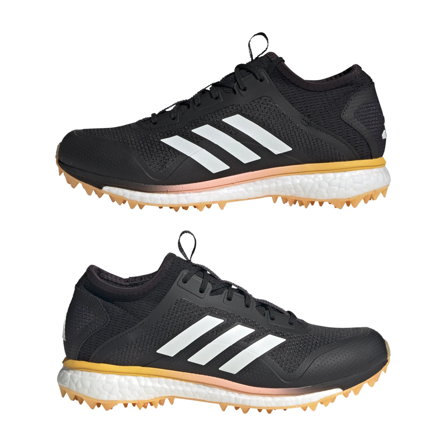 All-round excellence on the hockey pitch. These field hockey shoes put you in charge with a water-repellent upper that locks your foot in for stability. A responsive midsole offers endless energy to keep you one step ahead of your rivals. The lightweight outsole has moulded studs for maximum grip on turf.