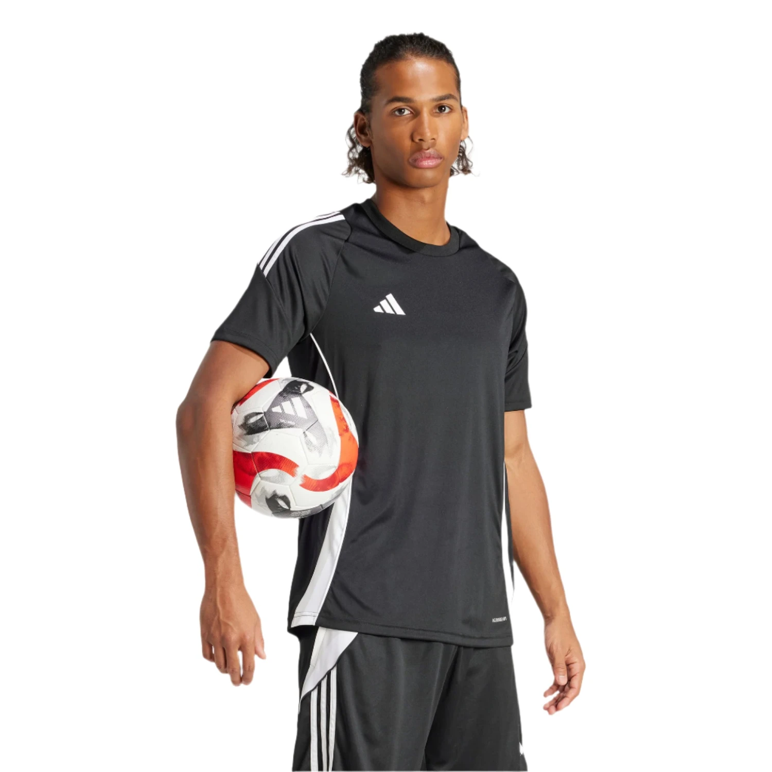 From pre-match warm-up to final whistle, this adidas Tiro 24 match jersey is built to support your game. Made for athletes in motion, it keeps you comfortable thanks to its moisture-wicking AEROREADY. Those floating 3-Stripes on the shoulders and that embroidered 3 Bar Logo add the perfect football finish to your look.