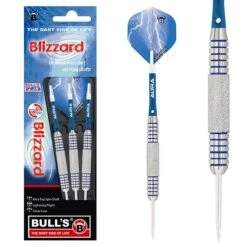 The brass Blizzard features a chrome plating for better grip. The blue applications give the barrel, which is available in two different weights, an elegant look. In the front and rear area, the Blizzard has a ringed grip, in between there is an area with a knurled grip. In the handy BULL’S Cone Case with Altra Top Spin shafts and Lightning Flights.