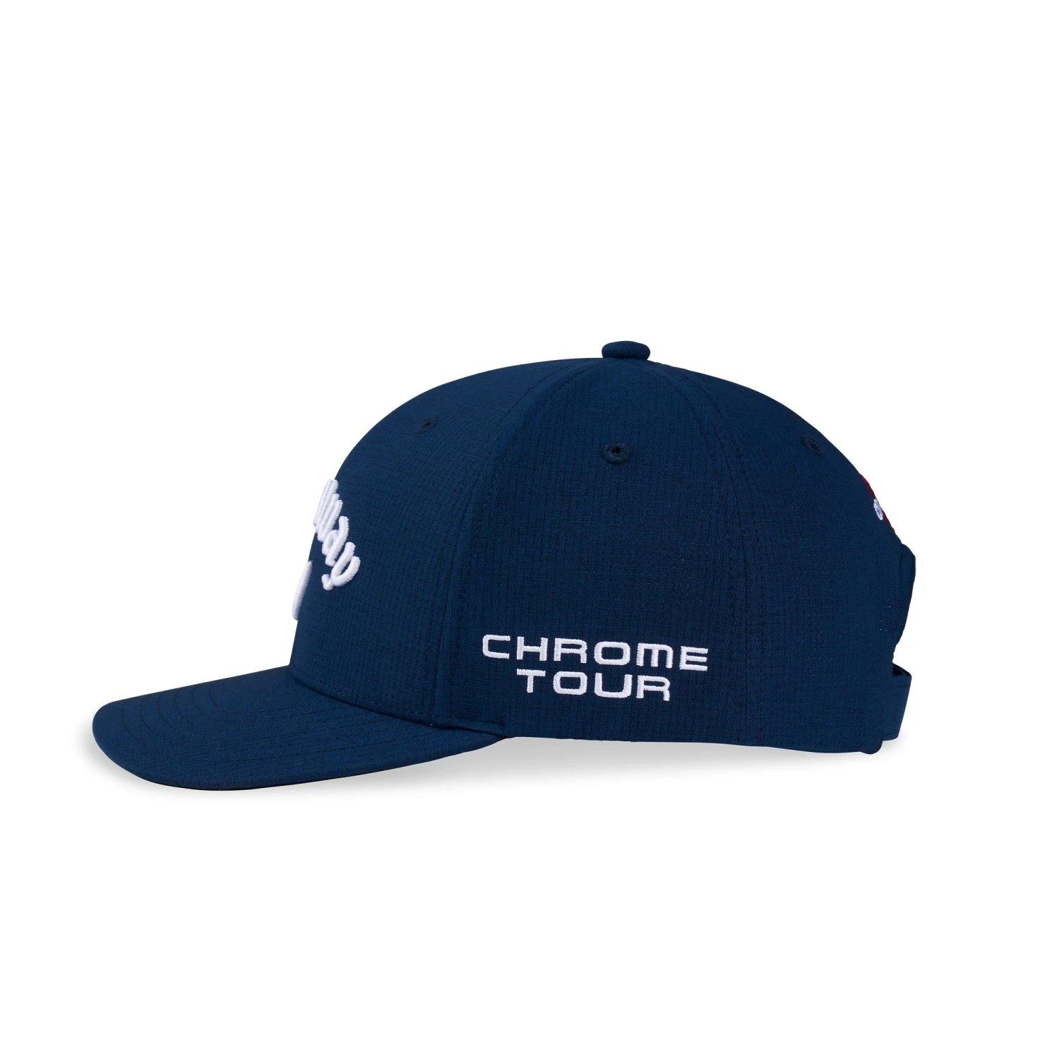 Combines a structured design, Tour branding, and high-profile to create a lightweight hat that is high on performance and popular on tour.