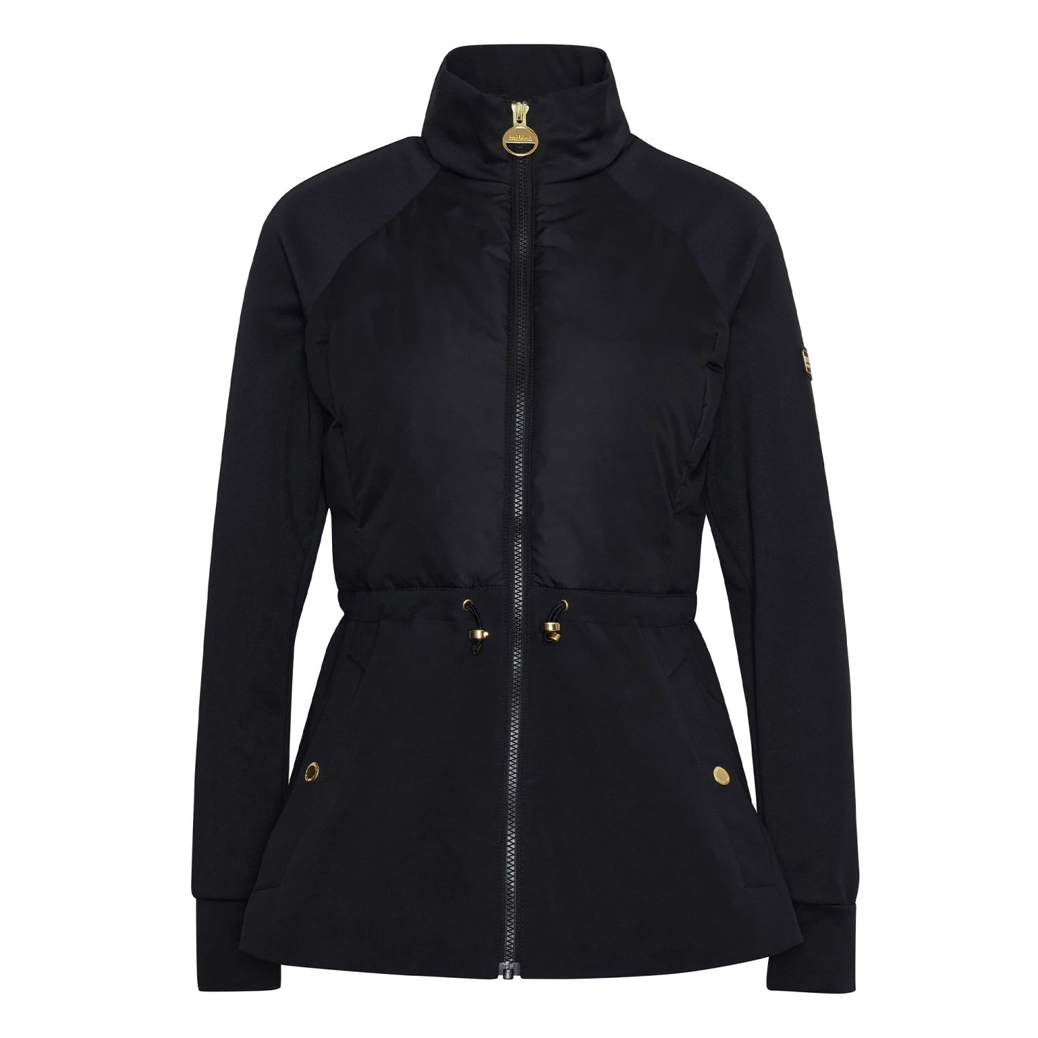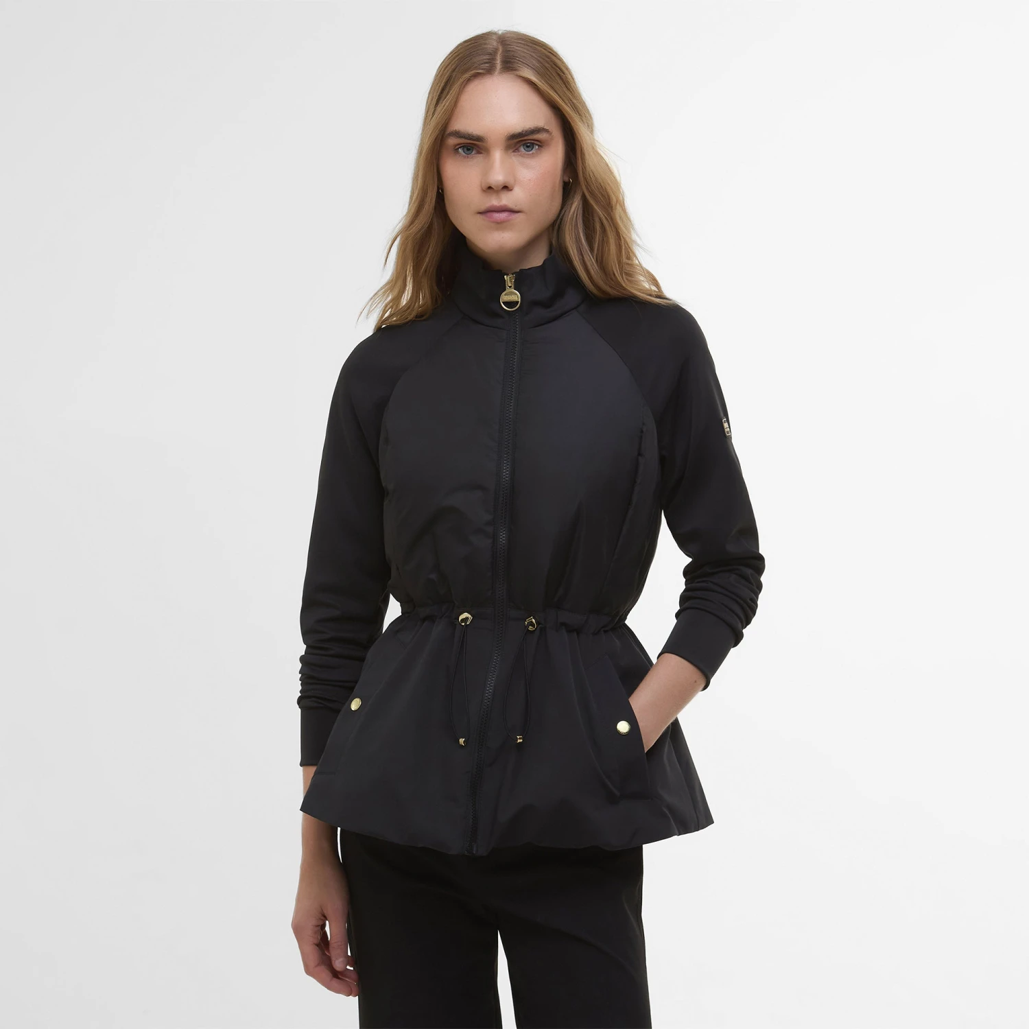 Fitted top with full waist drawcord to create a peplum silhouette. This style features studded welt pockets, a centre front zip fastening and sweat fabric sleeves.