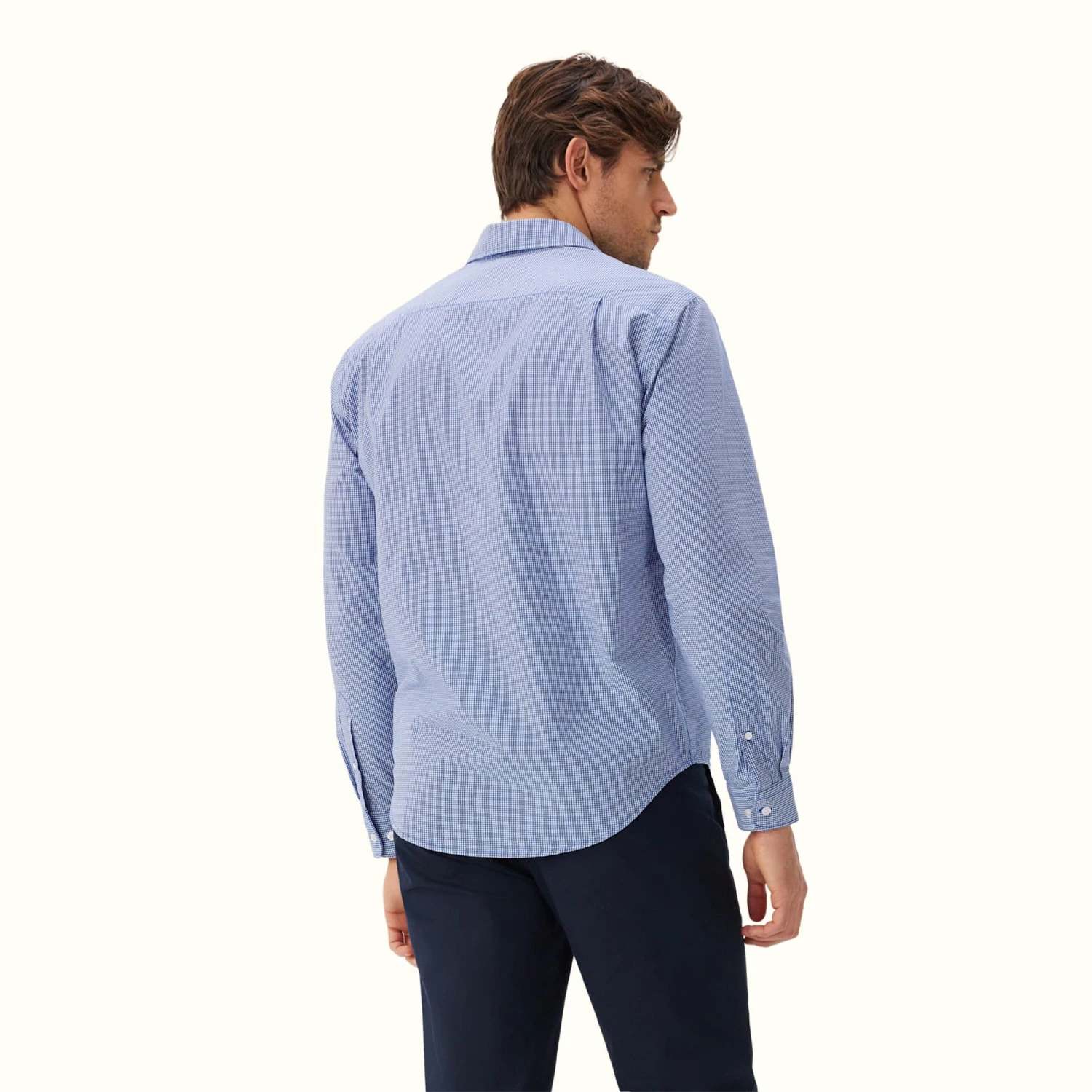 A modern update on the bestselling regular fit shirt, with a slimmer cut and classic point collar. This edition is crafted from checked cotton poplin with a single chest pocket.
