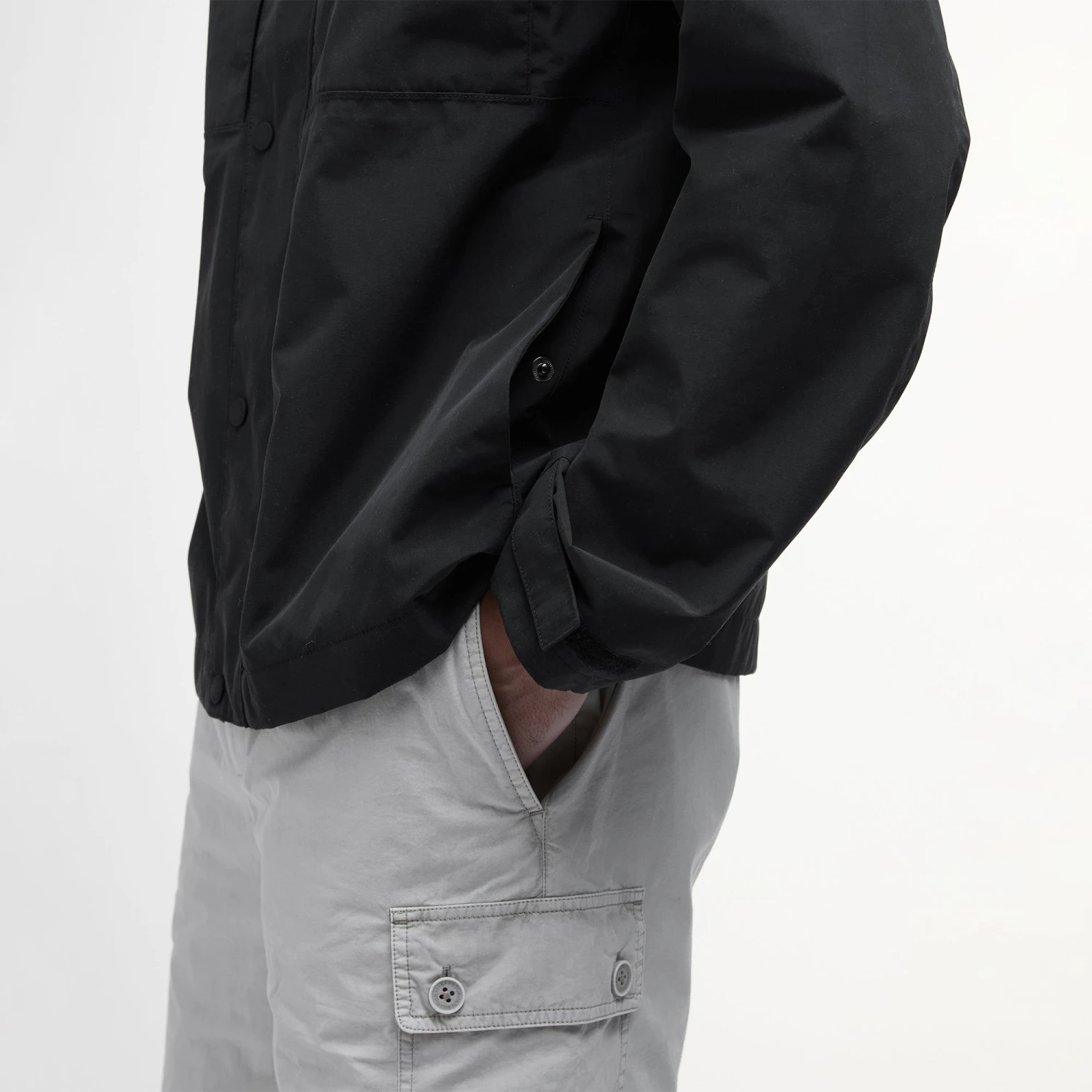flaps. Featuring zip and stud front fastening, two lower inseam pockets and adjusters to hood and cuff.