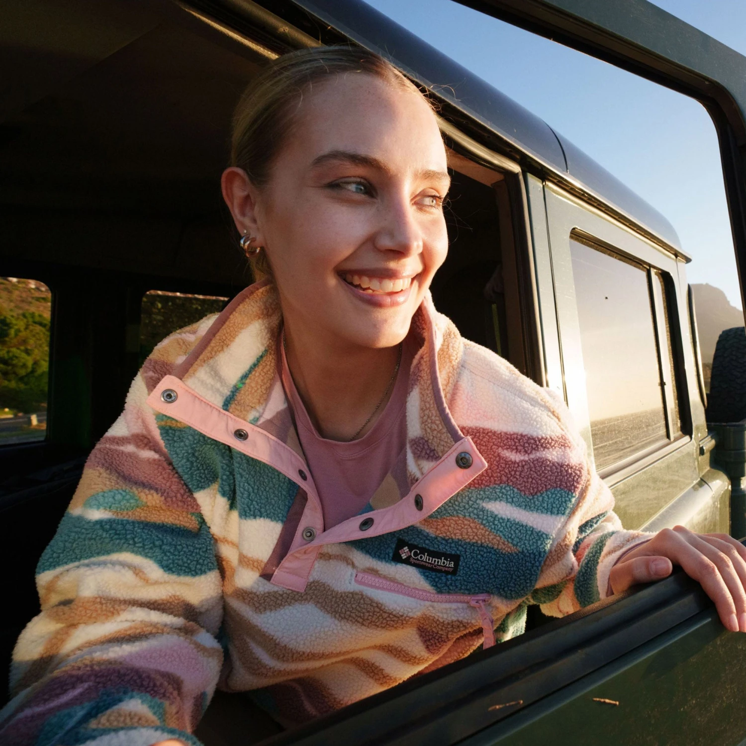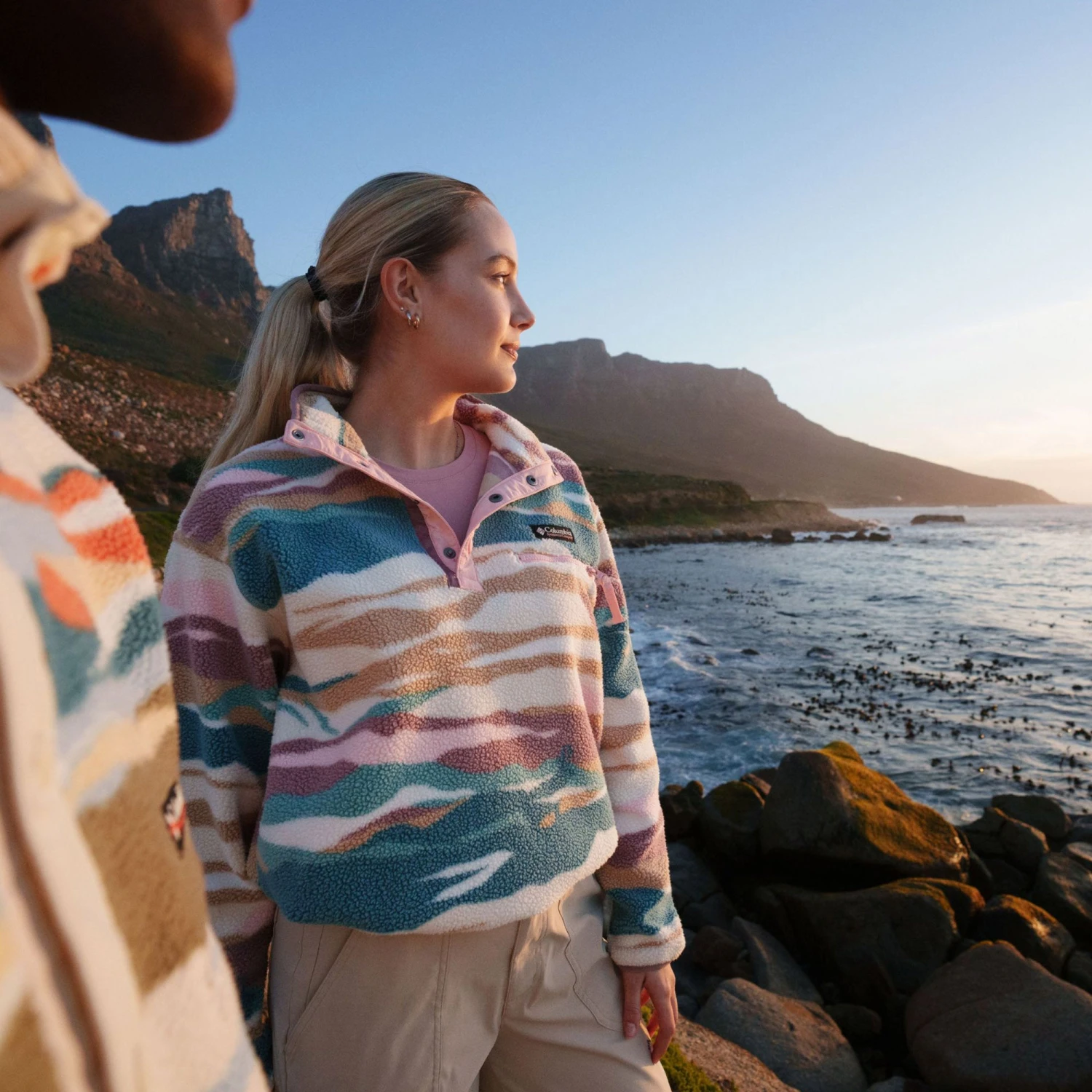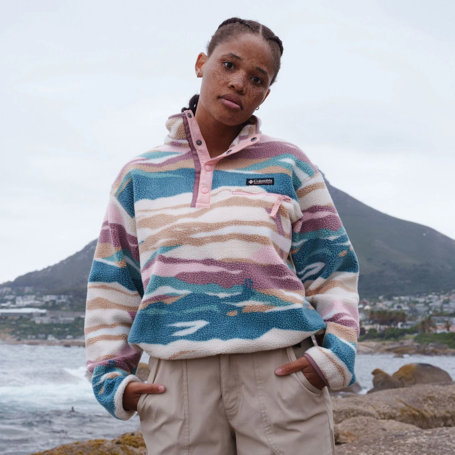 Look cool in the city and stay warm on the trails in this snuggly cropped half snap fleece.