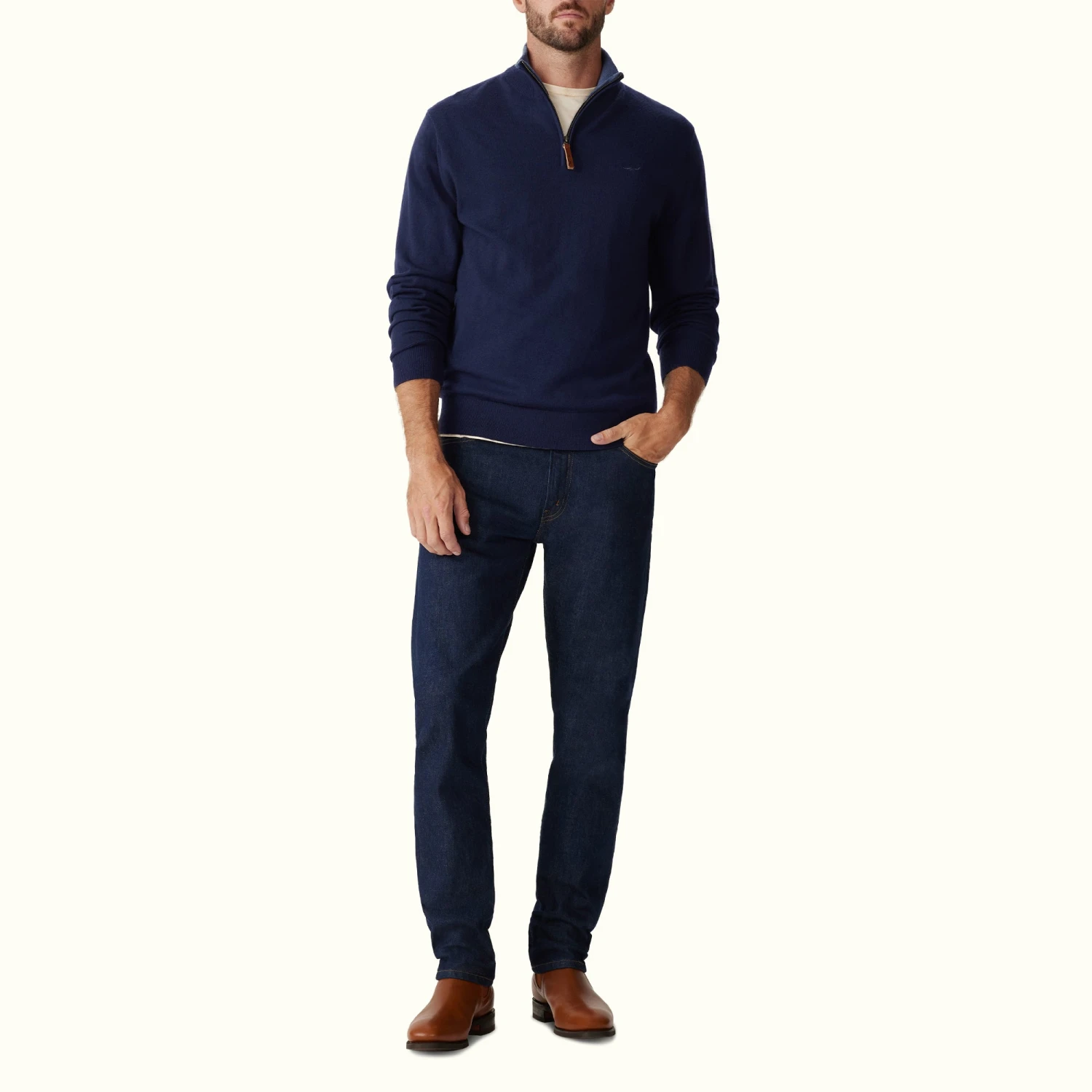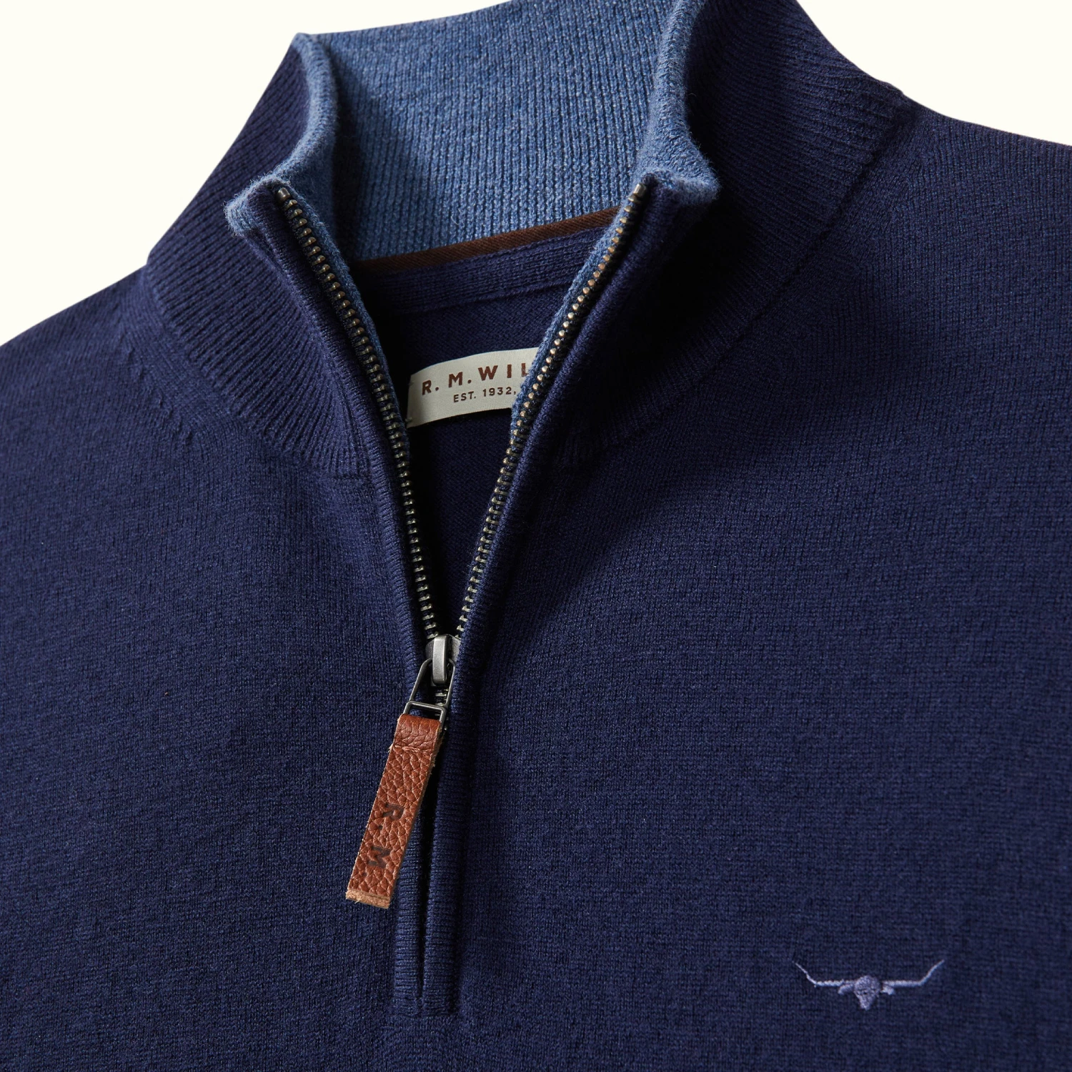 The Ernest Sweater is a comforting smart/casual style, designed in a relaxed fit with full length sleeves and a 1/4 zip opening at the neck. It’s woven from a soft cotton cashmere blend with textural ribbing at the cuffs and waist, finished with subtle, tonal embroidery on the chest in the form of the signature R.M.Williams longhorn.