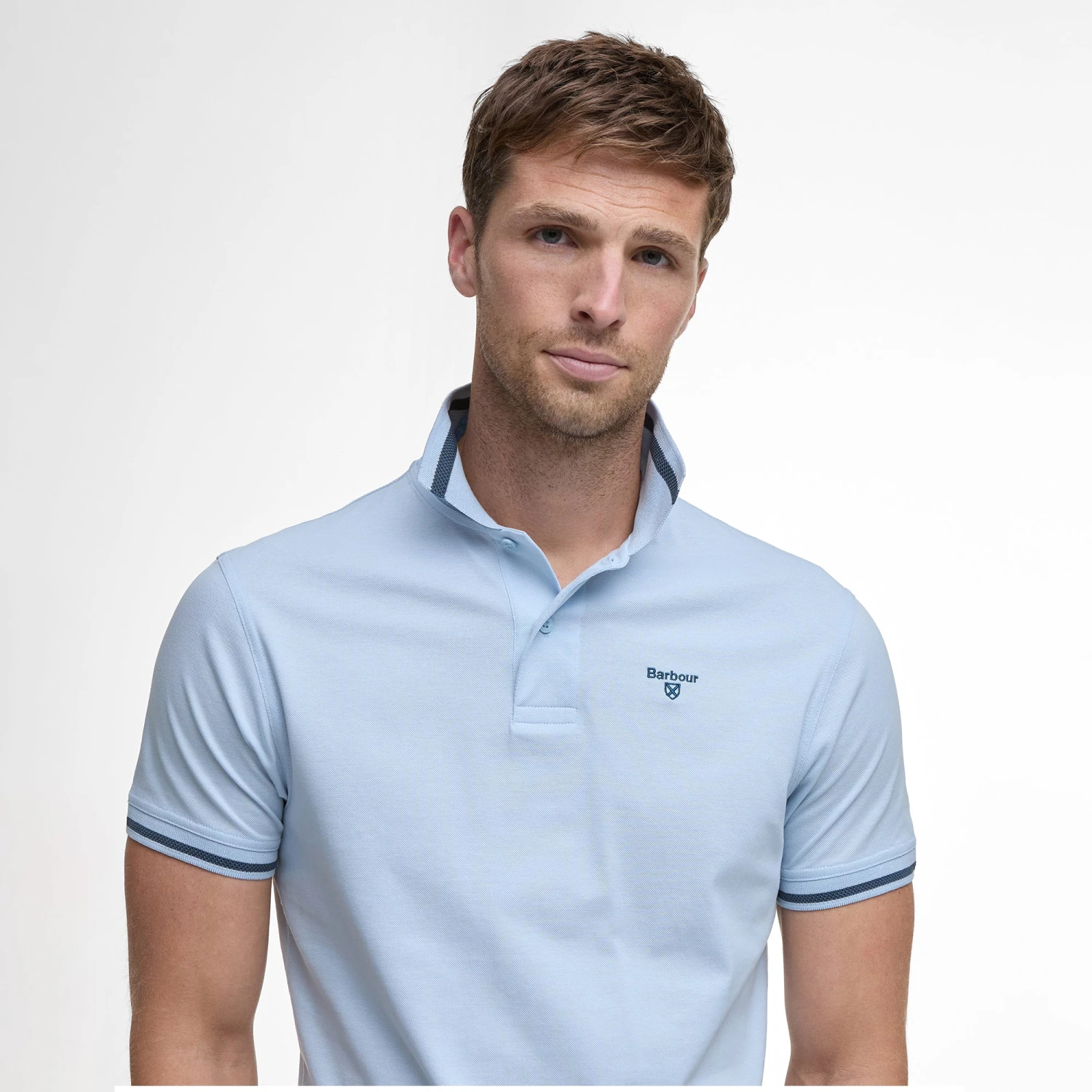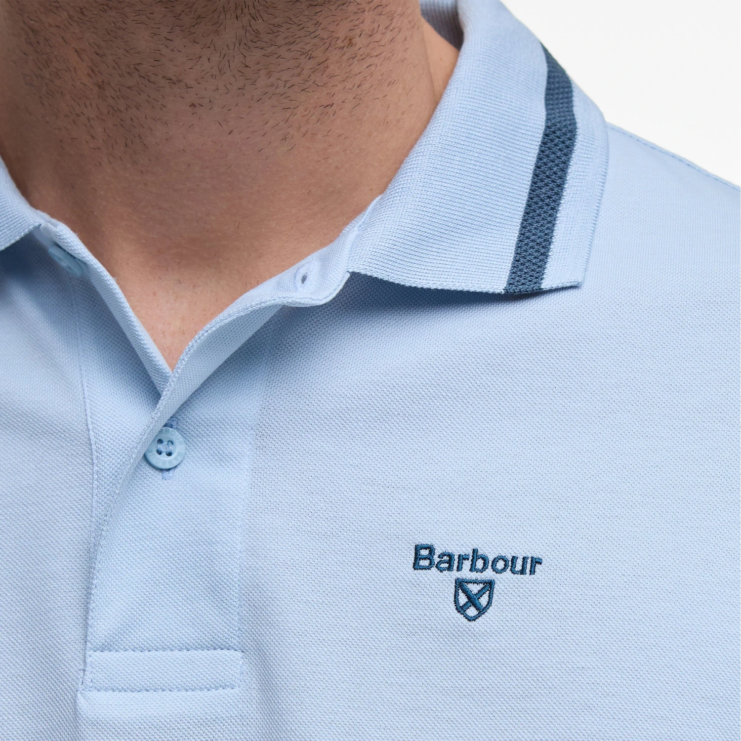 Barbour summer lightweight polo with contrast mesh stitch detail to the collar and cuffs.