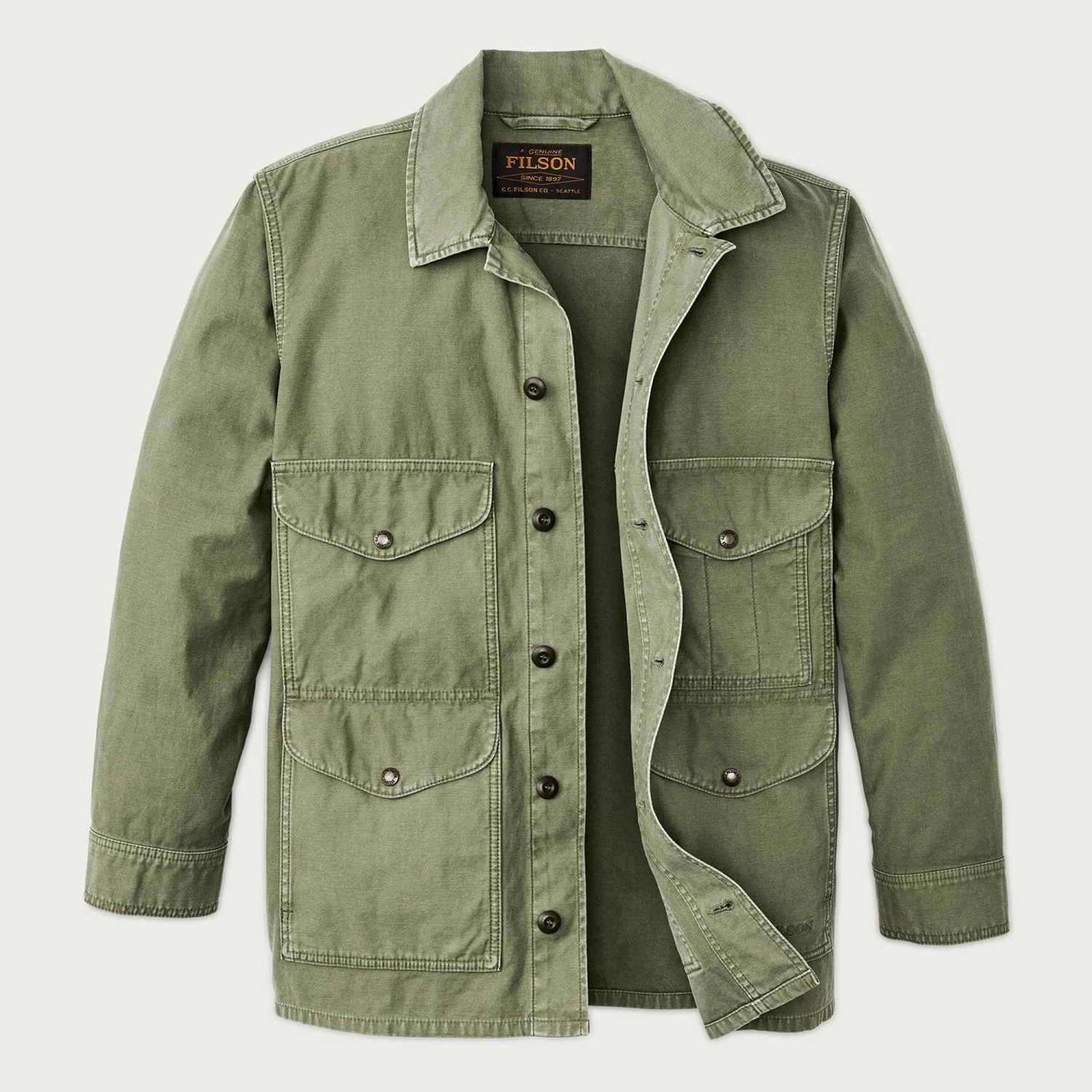 Filson’s iconic jacket in midweight cotton for warmer weather.