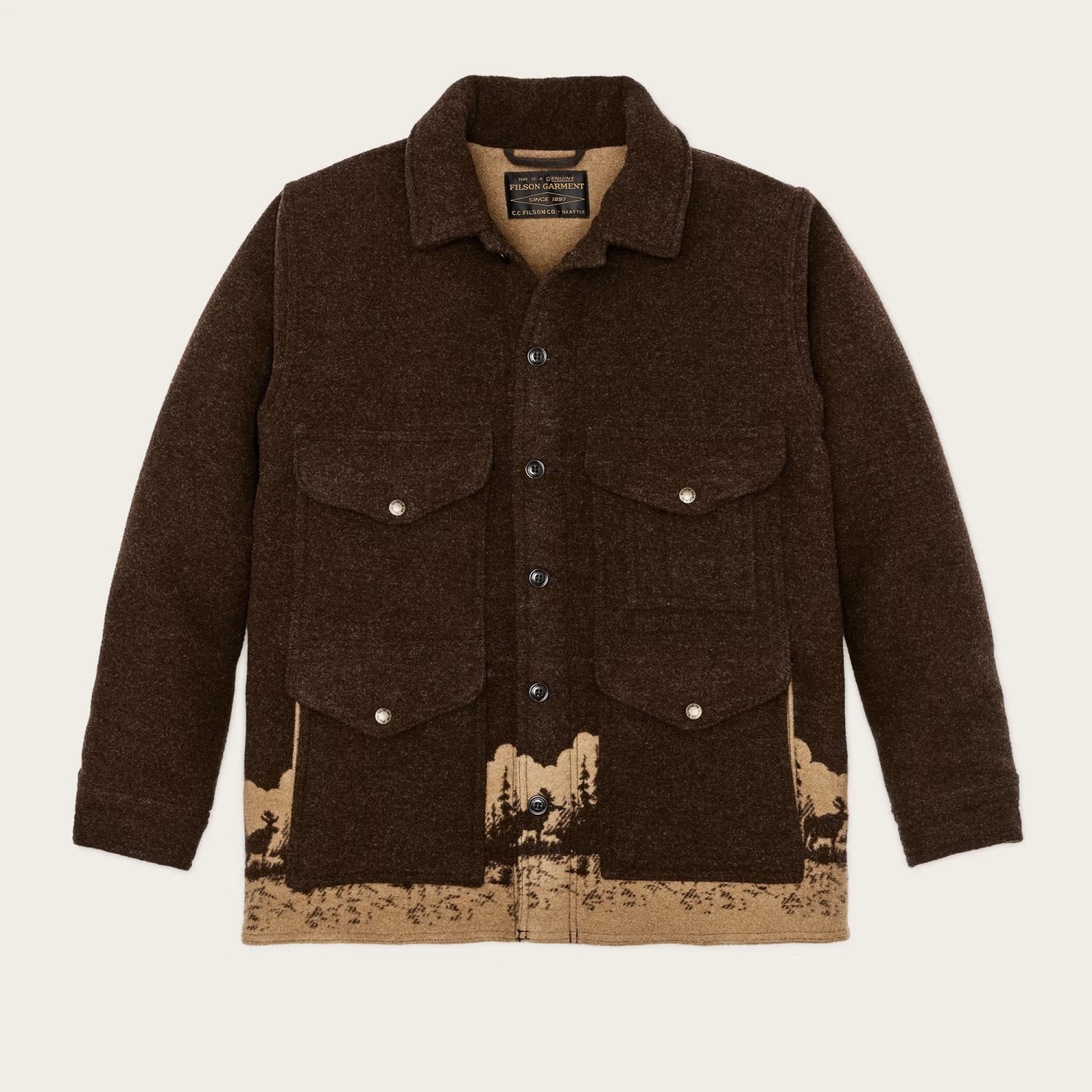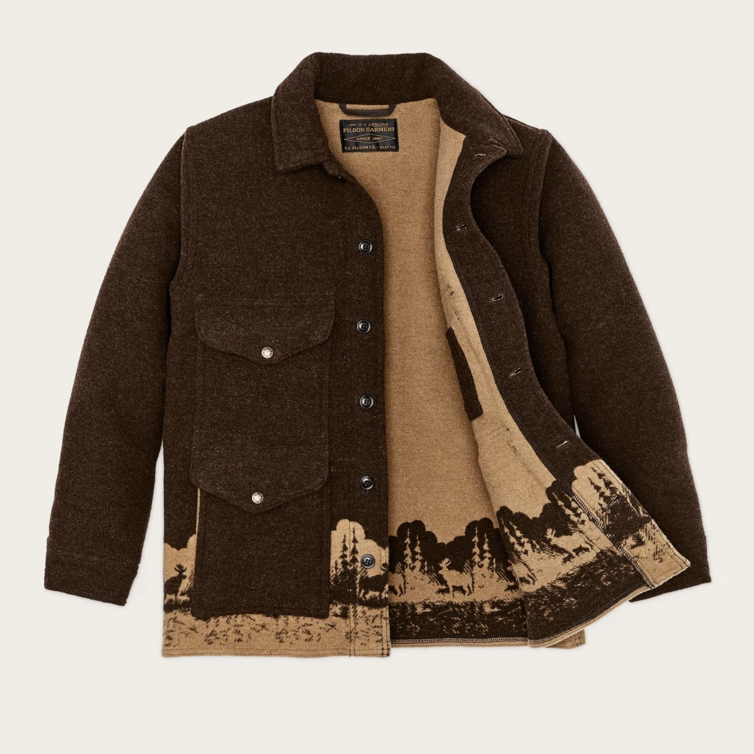 This rare, special-edition wool Cruiser is made with extra-thick wool for added warmth. It’s woven on jacquard-controlled looms to enable creation of the intricate wildlife graphics. Originally patented in 1914 and designed for timber cruisers and field engineers, the Cruiser’s functionality made it a favourite for hunters, woodsmen, and even the U.S. Forest Service. Today it remains a top choice for anyone who enjoys time outdoors.Â