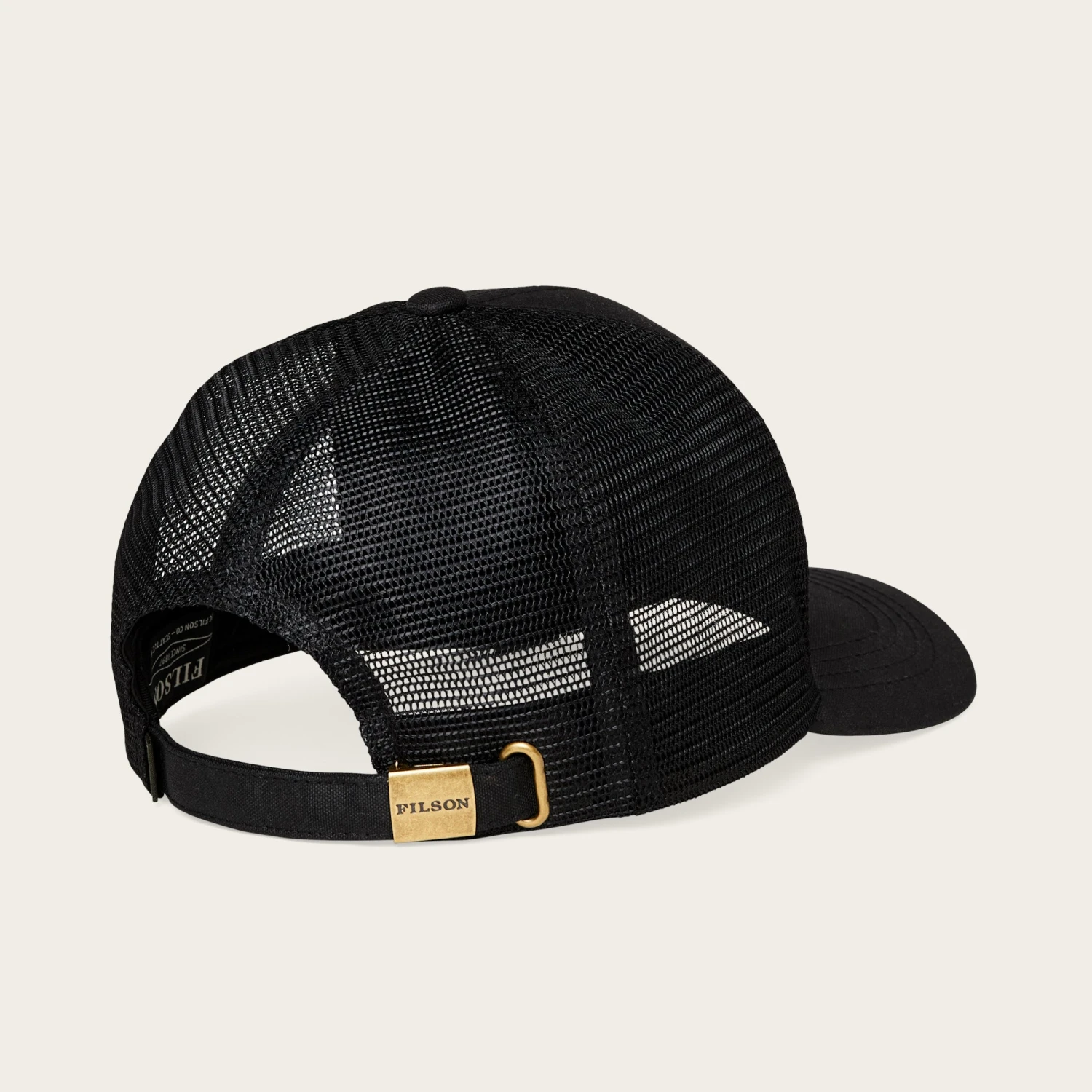 The classic cap hugs your head comfortably, with an adjustable strap and brass buckle on the back. This six-panel cap features a pre-curved bill for protection from sun and rain, and a bold Filson patch on the front.