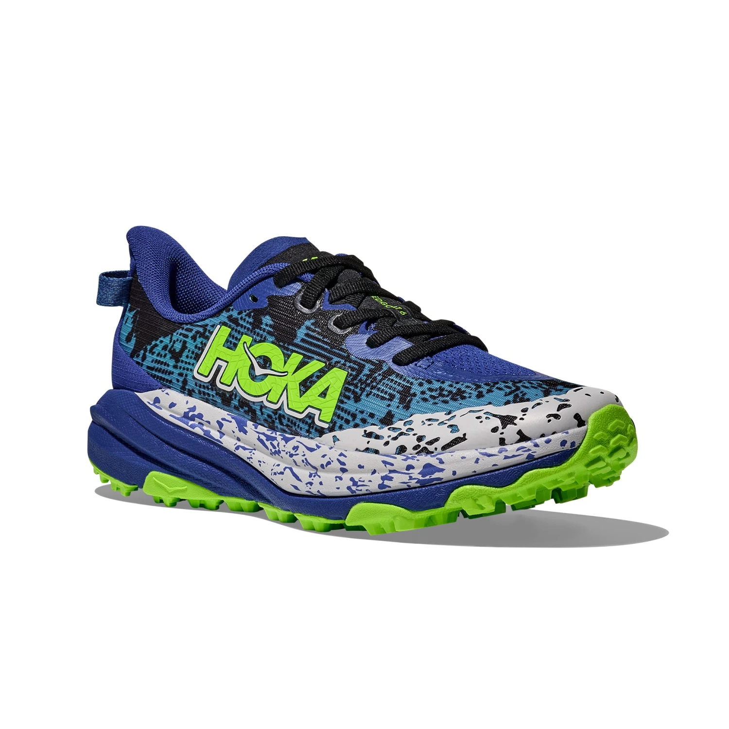 Built off the blueprints of HOKA’s original trail icon, HOKA’s Speedgoat 6 Kids’ is engineered with the same rugged performance features as its predecessor. Now it’s even lighter than ever with a 30% sugarcane EVA midsole, deeper durable 4.5mm lugs for trail traction, and even more recycled materials than before.