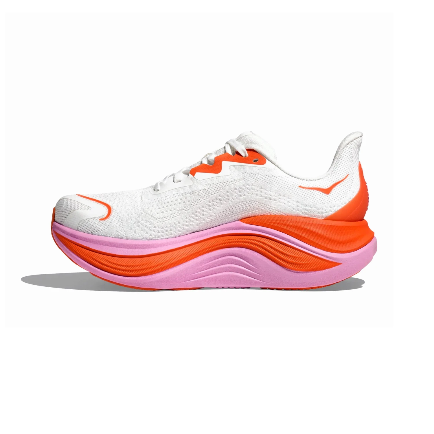 HOKA threw out the rulebook when creating the Skyward X. Pushing soft and smooth to the extreme, this cushy new trainer features a revolutionary suspension system with a convex carbon fibre plate that allows the suspension system to compress and spring back with each step.