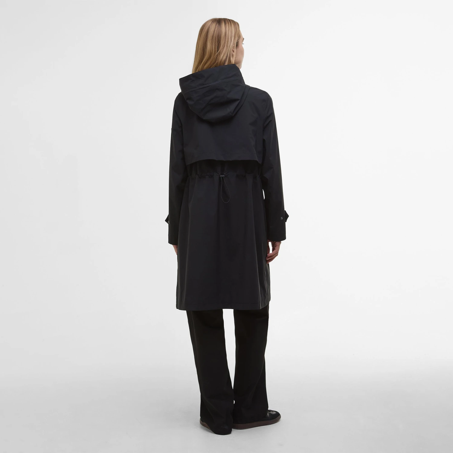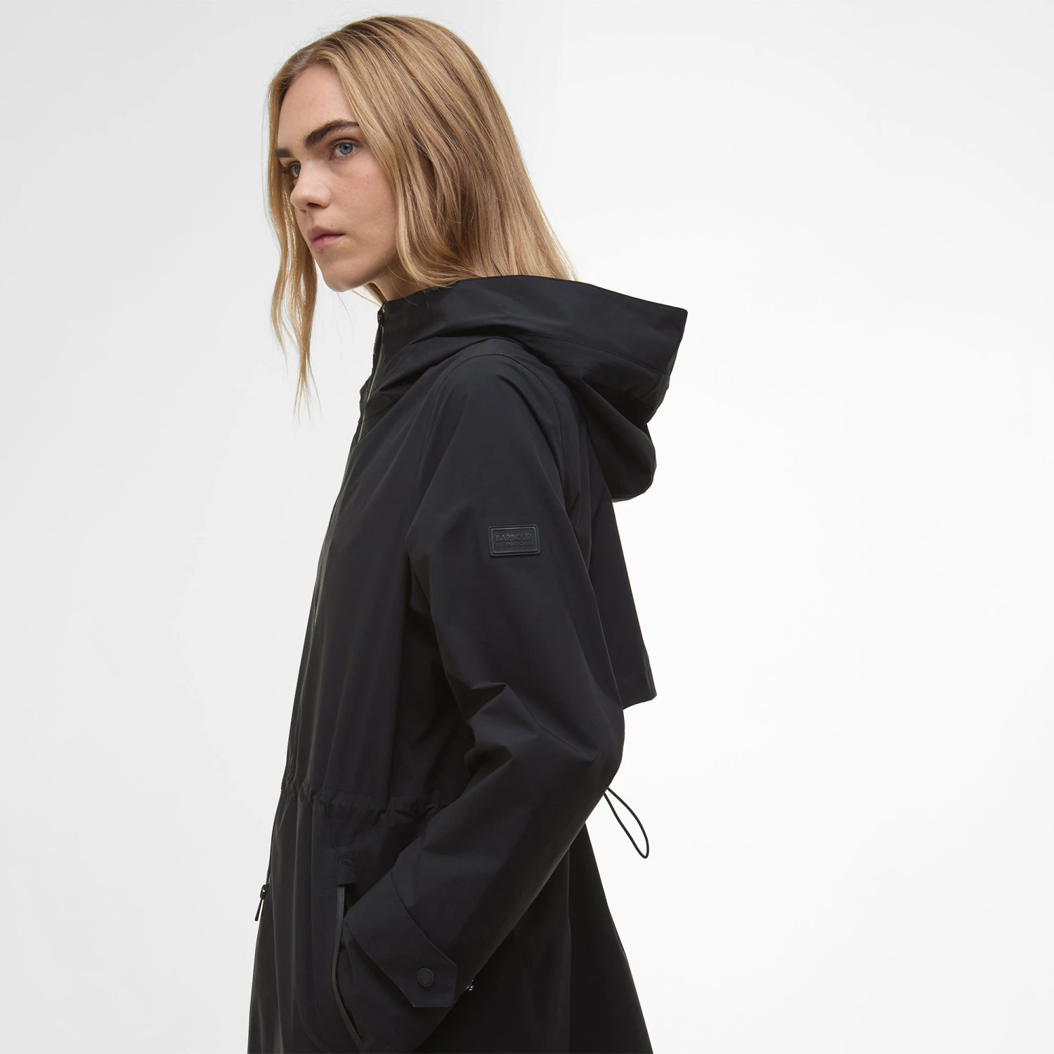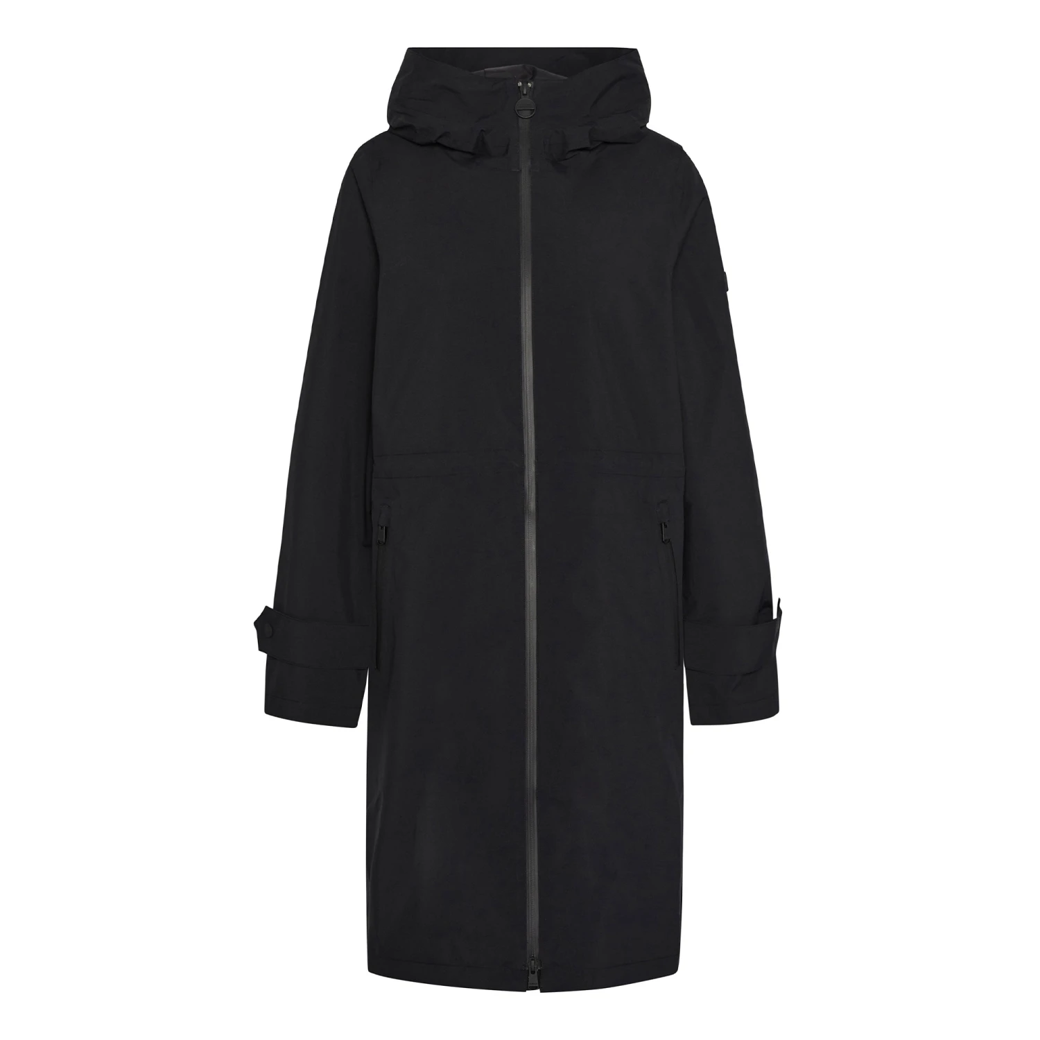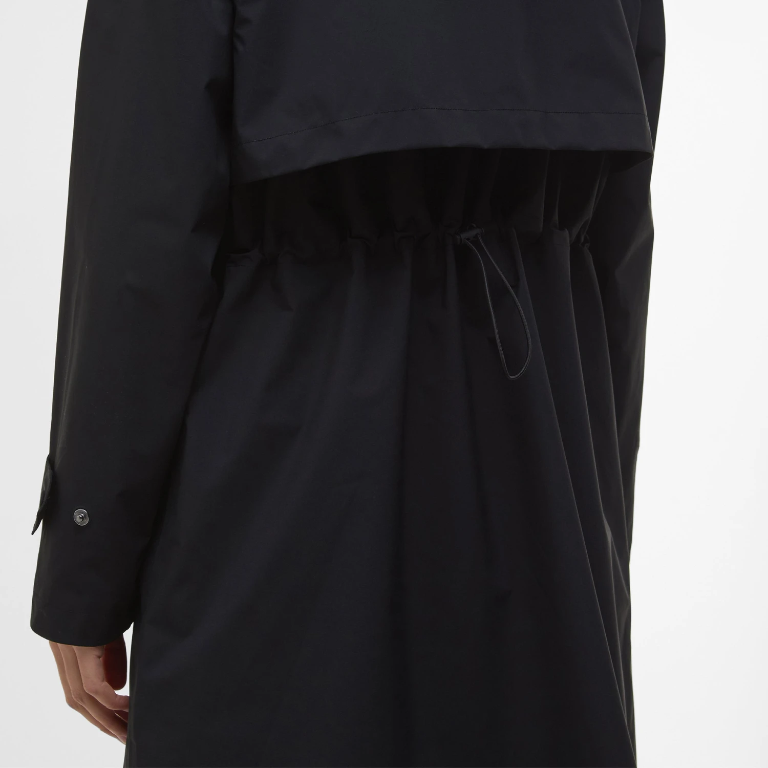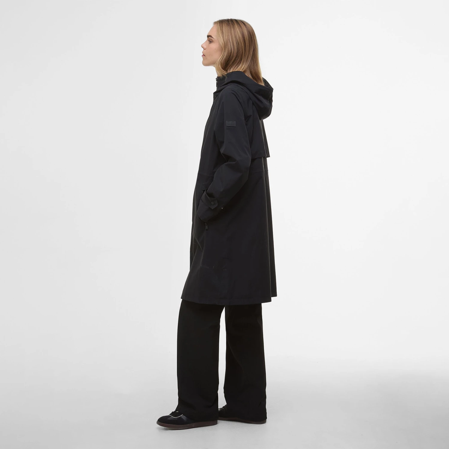 Longer line waterproof with adjustable snorkel hood. This style features a full waist drawcord and contrast black rubberised trims.