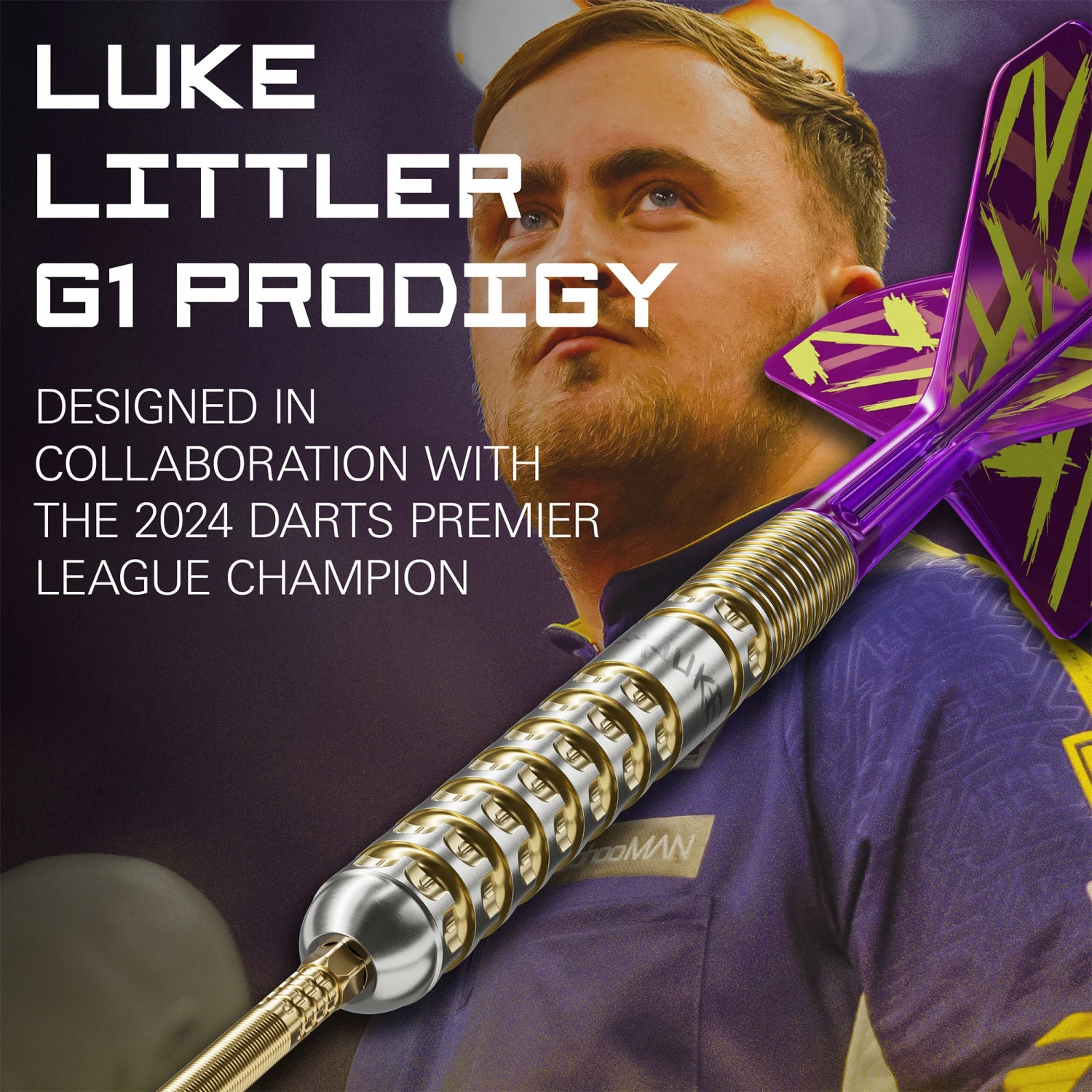 Introducing the Luke Littler Generation One, Prodigy Edition, boasting a stunning design with flecks of gold throughout, reflecting elegance and exclusivity, inspired by the world of collectible trading cards. Created in conjunction with “The Nuke” to meet his exact requirements and play specification.