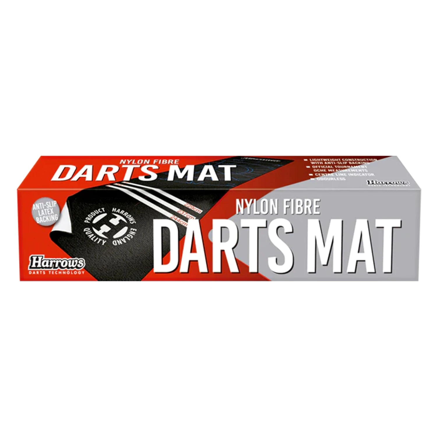 3mm nylon 250g/sgm loop pile top with anti-slip latex backing. Printed with Harrows logo and official tournament oche measurements.Â