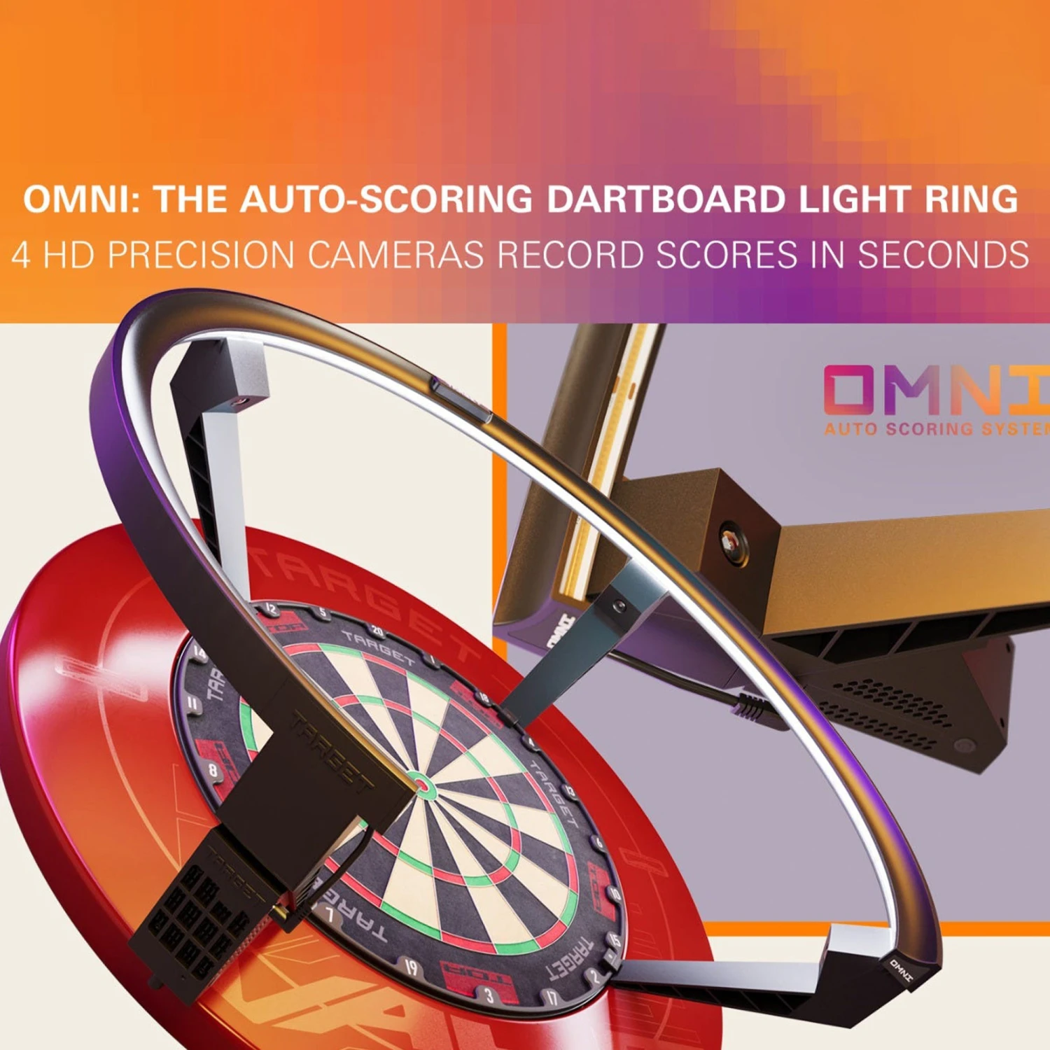 Introducing Omni by Target Darts, the ultimate auto-scoring dartboard light ring that revolutionizes your darting experience.