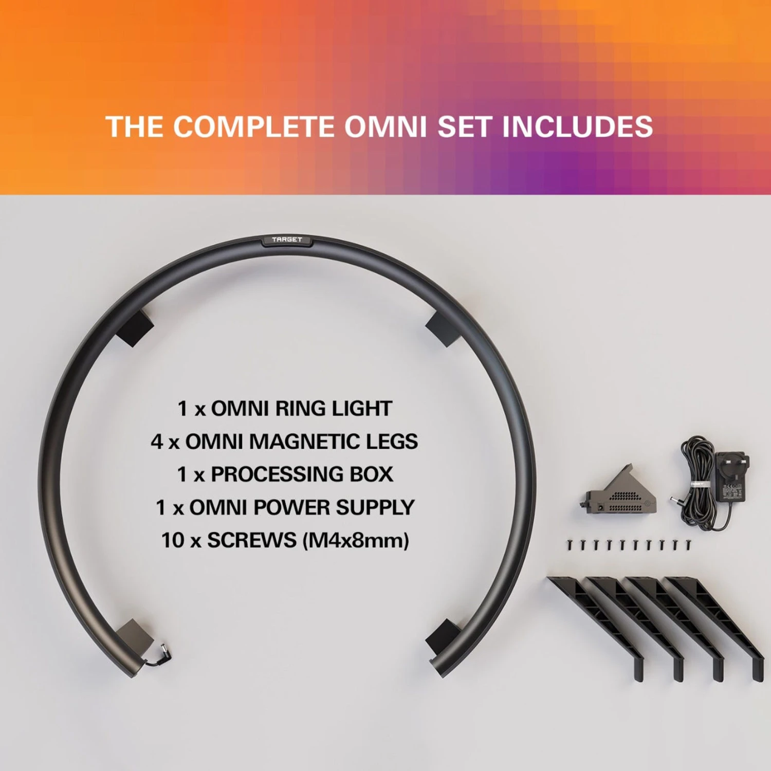 Omni consists of two main components: a state-of-the-art dartboard ring light and a powerful processing unit. The ring light is equipped with bright white LED lights and four HD precision cameras that monitor darts as they hit the board, ensuring almost flawless accuracy by calculating scores in less than a second. Omni’s advanced camera system can even detect bounce outs, ensuring every throw is accurately recorded.