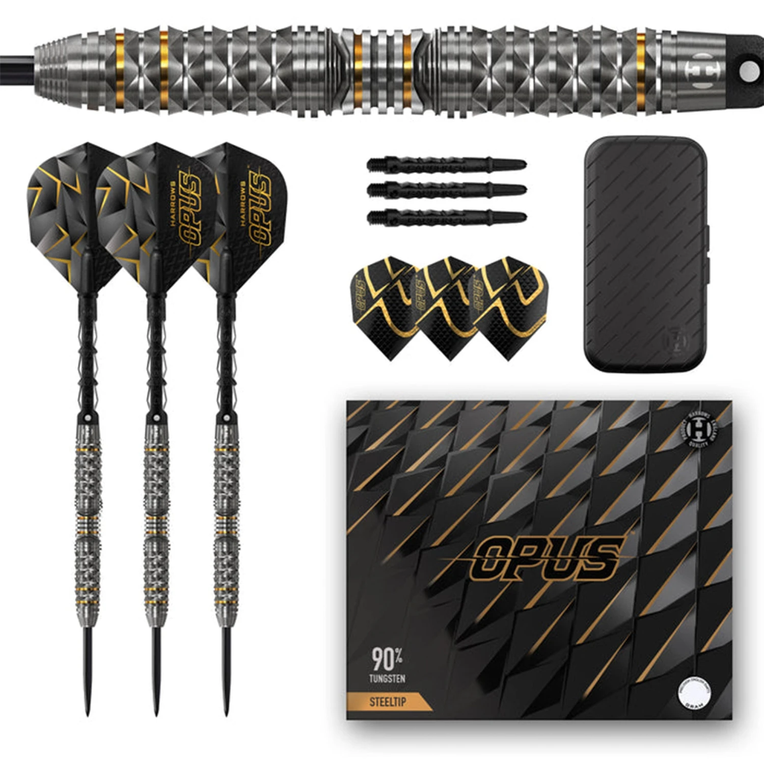 - Opus darts are supplied with the new Slimcase, 2 sets of Carbon ST shafts, 2 sets of 100 micron Opus flights and are match weighed to +/- 0.05g.