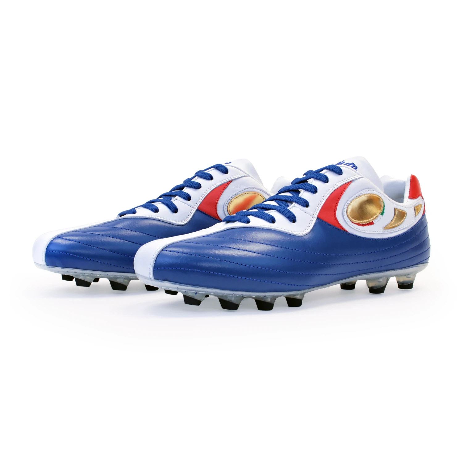 Pantofola D’oro Ascoli Piceno FG / AG Italian leather handcrafted football boots in blue, white, and red