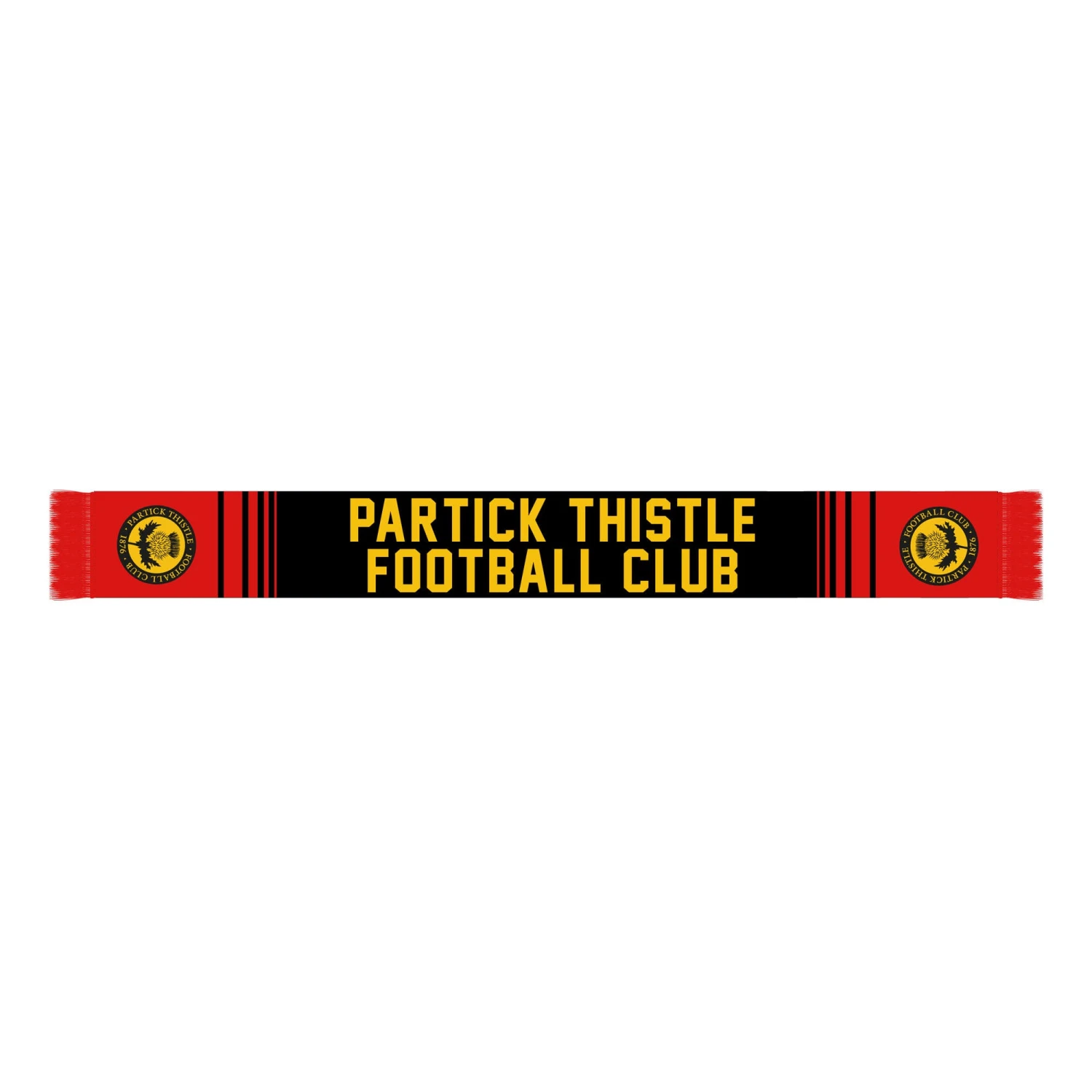 This exquisite scarf features the Partick Thistle Football Club’s crest and proudly showcases the team’s vibrant colours.
