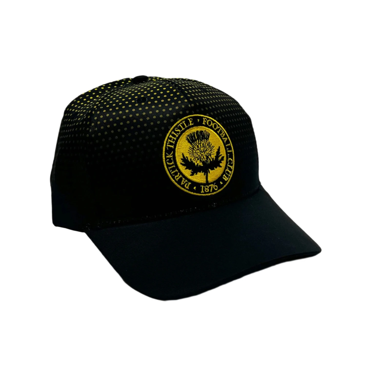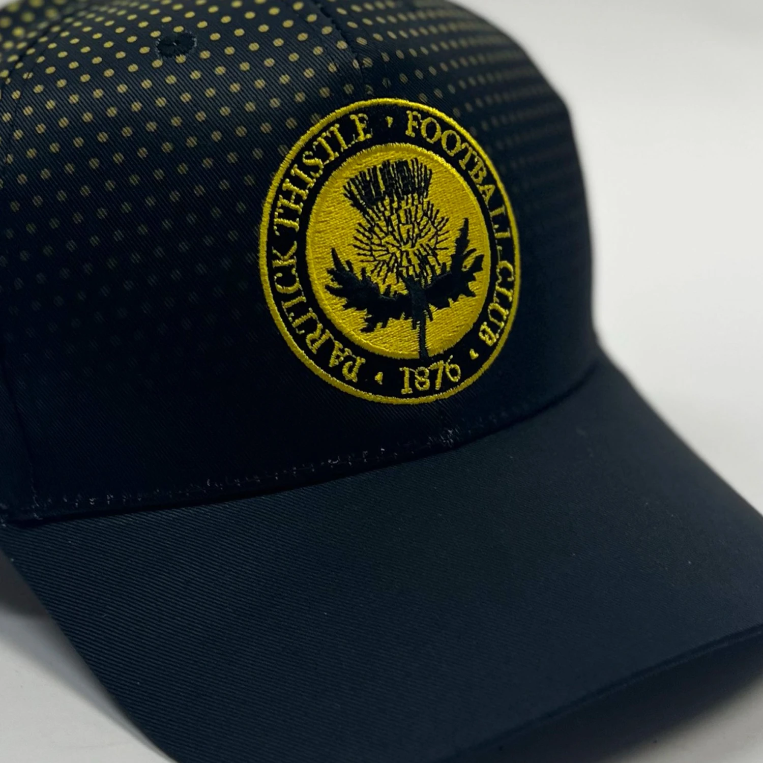 Experience ultimate comfort and style with the Partick Thistle Gradiant Cap. This baseball style hat features a stunning gradiant dot design, giving it a unique and modern look. The hook and loop fastener ensures a perfect fit every time. Show off your love for Partick Thistle with this must-have accessory.