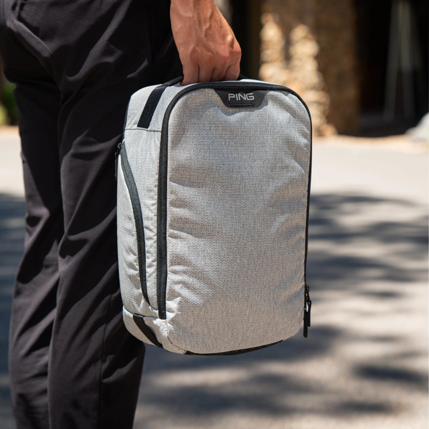 Keep your golf shoes and trunk tidy with this durable and spacious Shoe Bag in Textured Heather Grey, designed to fit up to size 13.