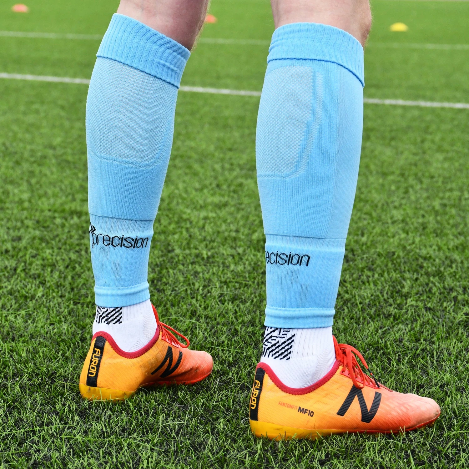 Precision Pro Footless Sleeve Socks are ideal for training and matches to wear with your grip socks. The stretch fit goes comfortably over your guard. Compression lower welt keep socks securely in place over your grip socks.