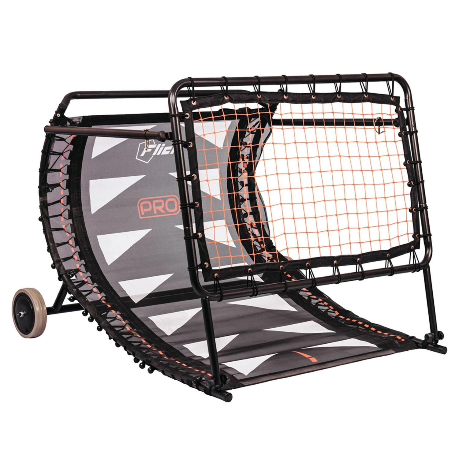 The Flick Pro Skills Trainer is an all-in-one training platform created to improve touch, control and agility using the adjustable front rebounder, passing gate and return ramp. Practise the same