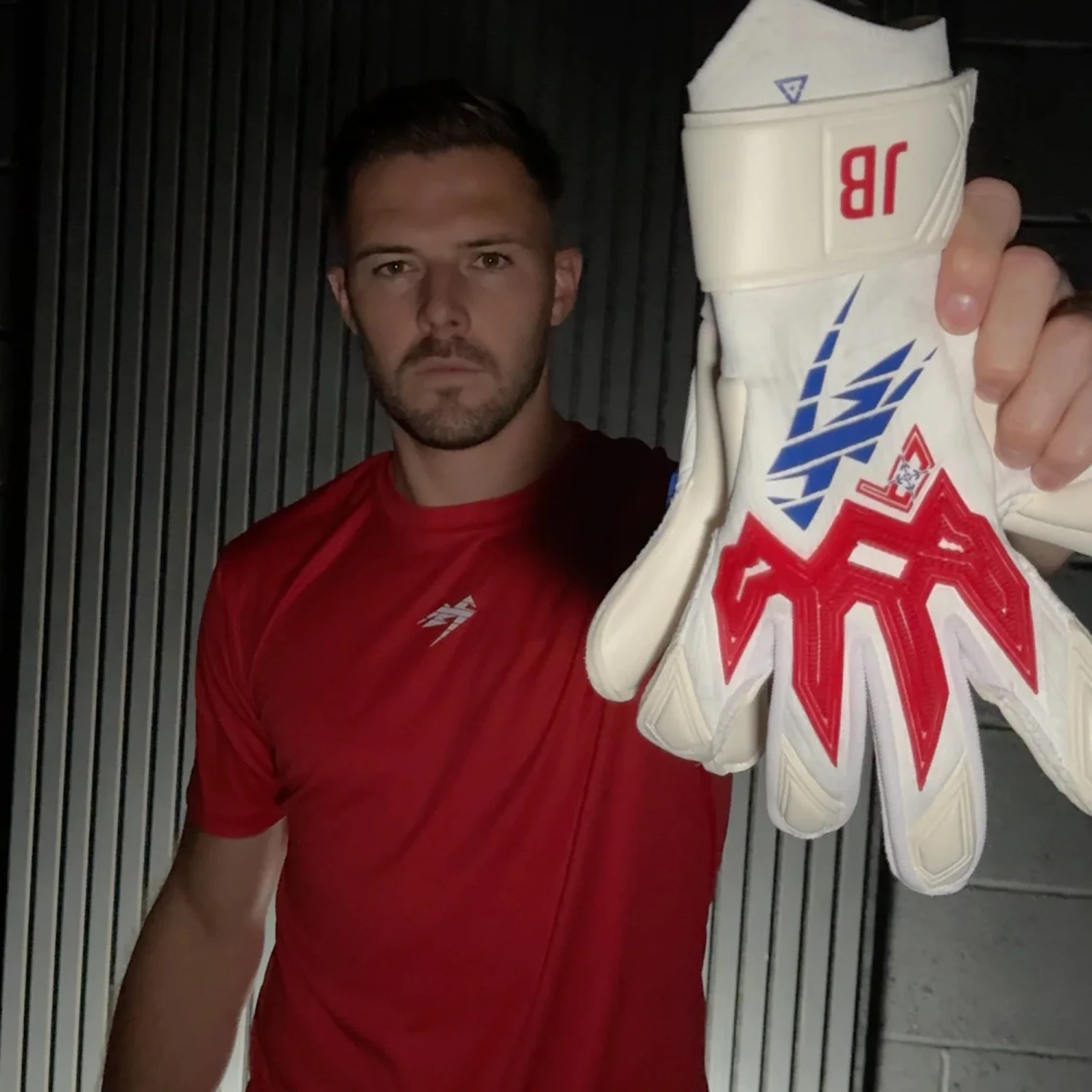 The RE:Gen Pro JB1 Goalkeeping Gloves, worn by Jack Butland, deliver elite-level performance with advanced features. Their new XLR8AER® climate-adaptive knitted construction ensures optimal breathability and comfort in varying conditions. The PWRGRID® backhand chassis offers enhanced protection and flexibility, while the reverse Sekure cut provides a secure fit and improved ball control. Equipped with a LOCK-ON elastic wrist strap, these gloves stay firmly in place during intense play. The pre-charged pro-grade latex palm guarantees superior grip and durability, making them a top choice for professional goalkeepers.