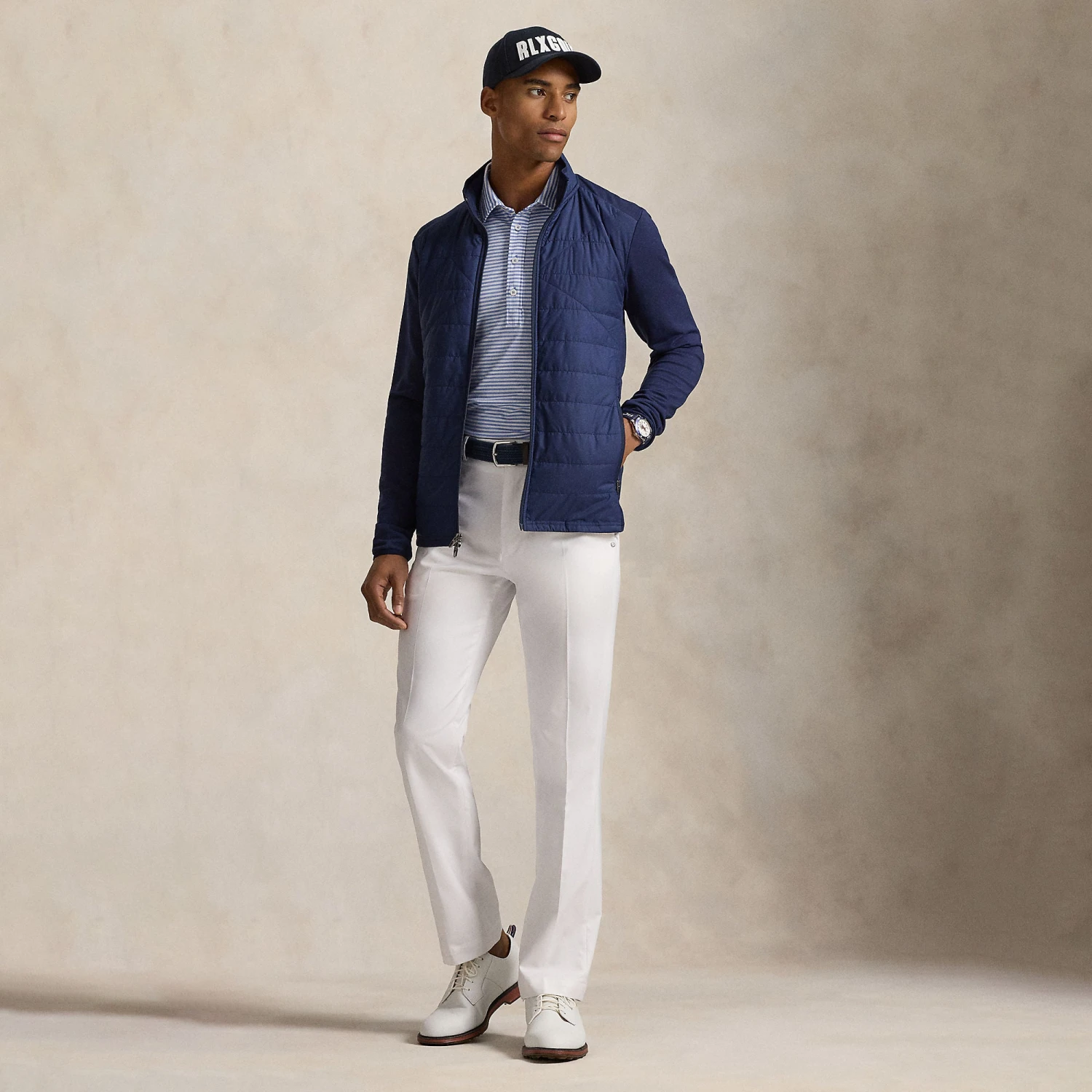 Crafted with stretch French terry, this jacket features a quilted ripstop panel at the front that is insulated for additional warmth.