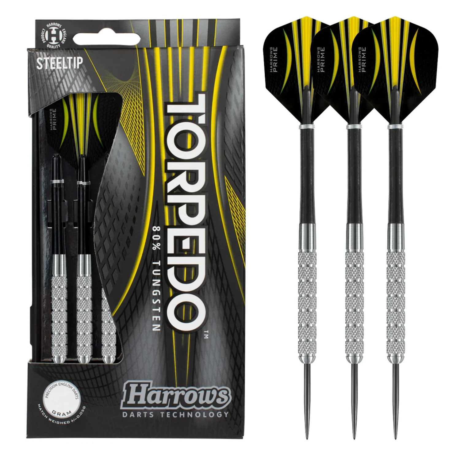This range has been upgraded to 80% tungsten. Torpedo darts feature parallel barrels, nylon shafts with flight retaining ring grips and are teamed with Marathon flights, creating an exciting intermediate priced series.