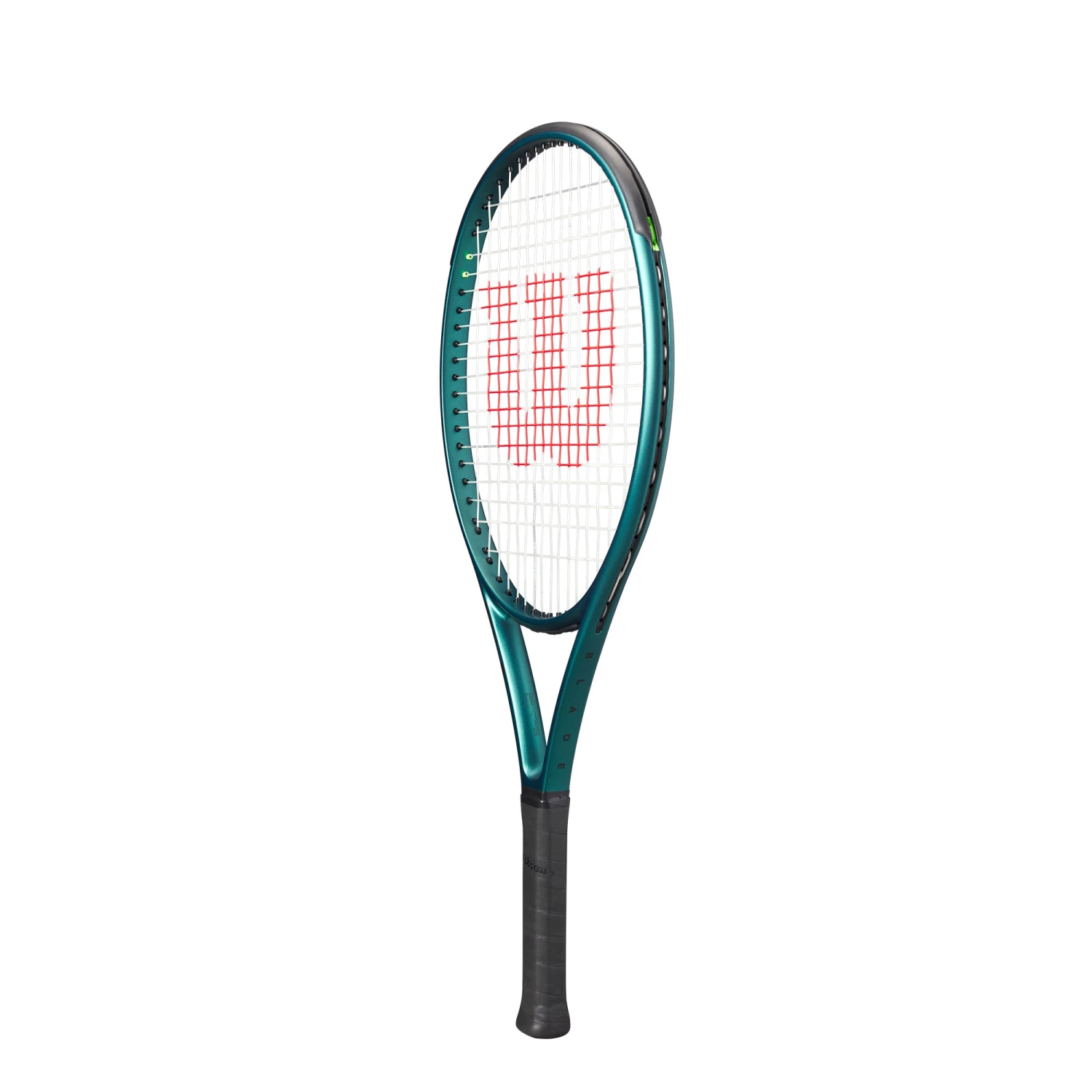 The Blade 25 V9 combines a design inspired by Wilson’s latest Blade performance racket series with all-around playability and feel that’s ideal for juniors aged 8-10. Featuring a new Emerald Night finish, this lightweight 25-inch racket has an increased sweet spot, providing a balance of controllable power, easy access to spin, and a more forgiving response. The Blade 25 V9 comes pre-strung with Wilson Sensation, a comfortable and arm-friendly multifilament string to help kids develop technique and build confidence on the court.