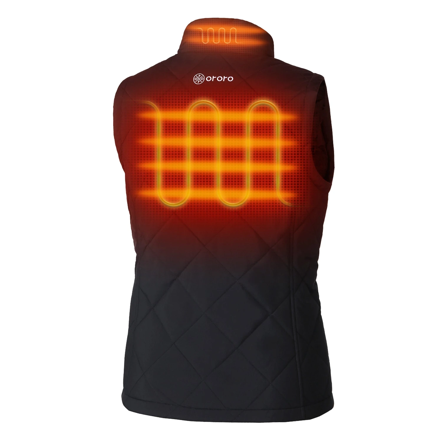 This newly designed quilted gilet for women by Ororo has a lightweight feel (13.0oz/0.8lbs for Medium Size) that is 50% thinner and 30% lighter than the original Ororo women’s heated vest.