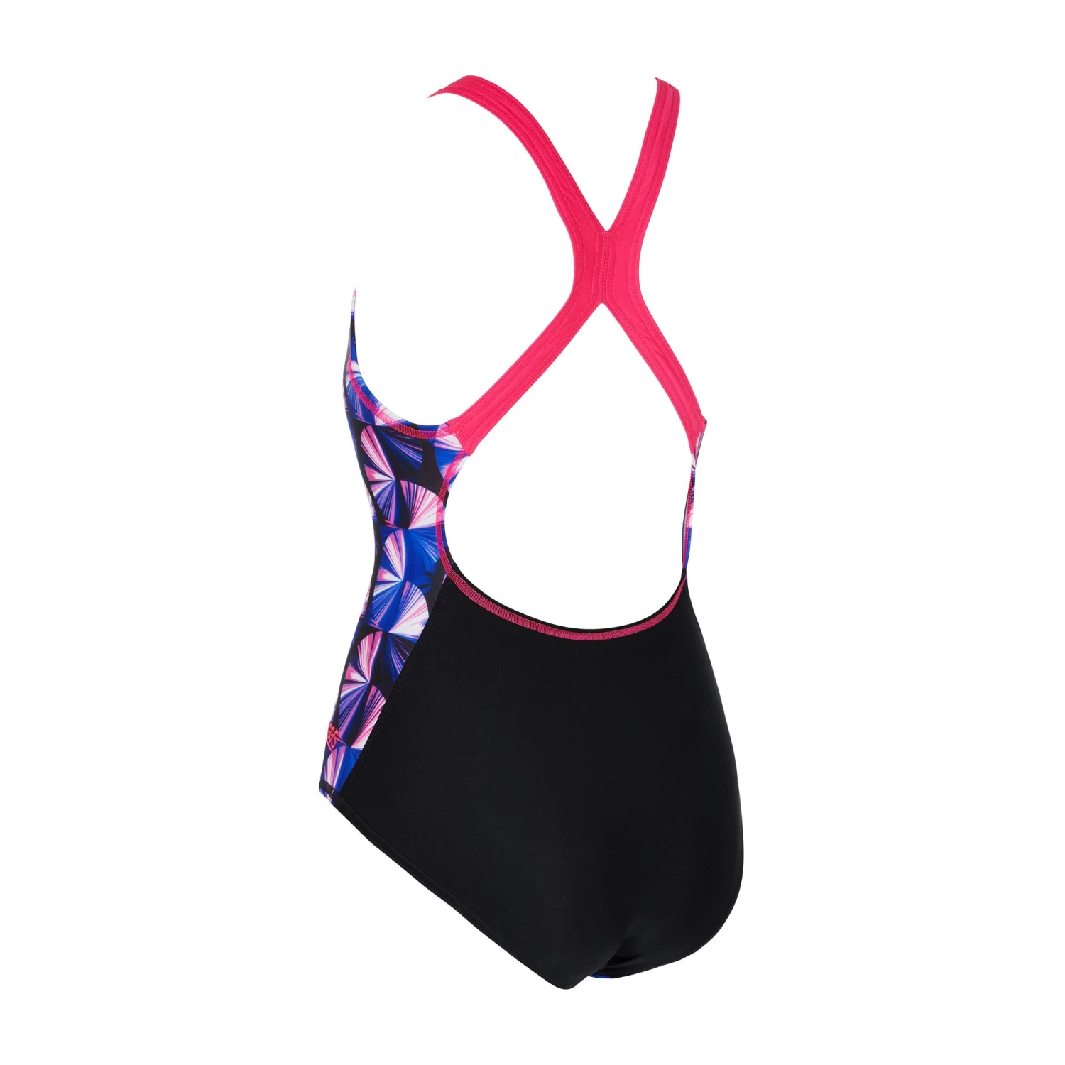 Disco and dance in the pool?! Zoggs new Disco Fan Flyback has a sporty feel but the digital design with contrasting neon pink straps make it feel leisurely. The print of fan styles with pink’s & blue’s on a black base will make any little girl happy. The wide straps provide great security and comfort whilst swimming whilst the open back and flyback style allow for great freedom of movement.