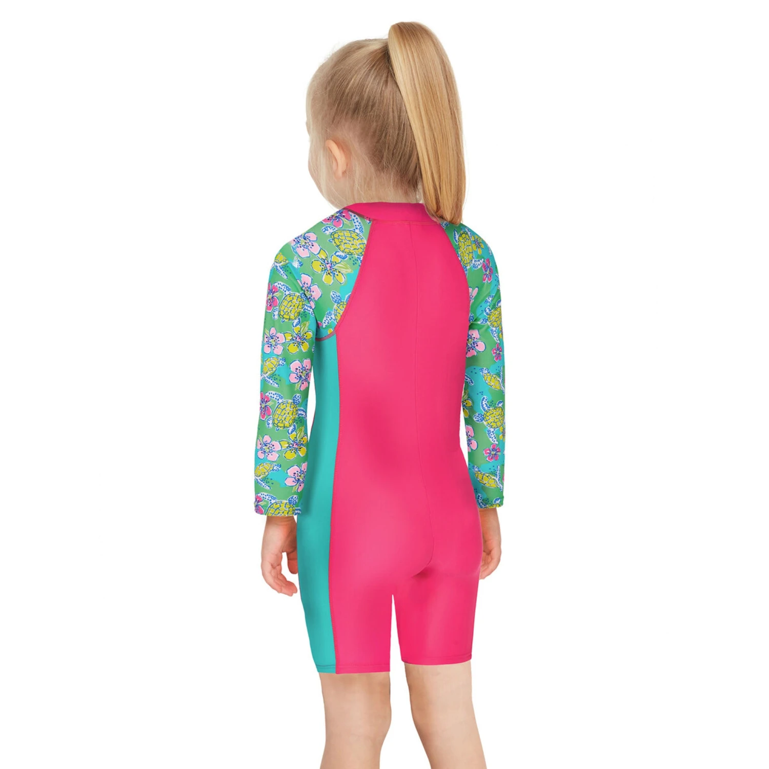 Give your kids a great swimming experience with this Turtle all-in-one swimsuit. Fun and functional, it’s designed to keep them safe and comfortable while they move freely. Featuring a turtle design, this one-piece is also perfect for a beach outing